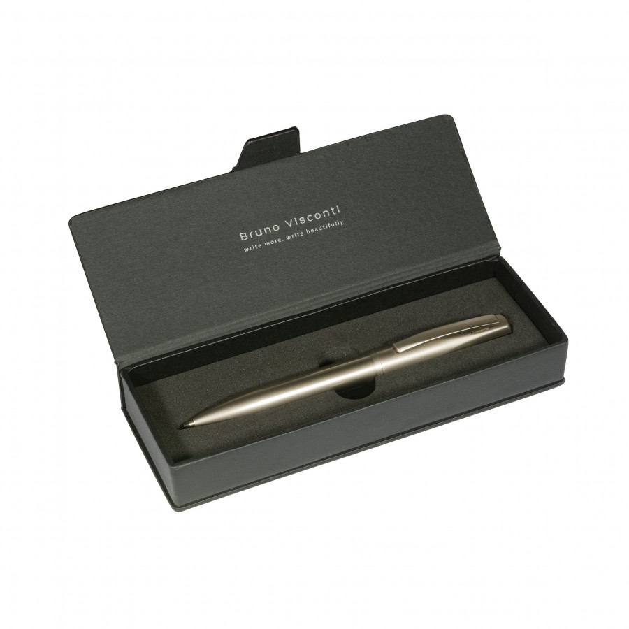 Ручка подарочная шариковая, поворотный механизм Portofino синяя, 1мм, металлический корпус шампань, черный футляр 20-0251-07/08 Bruno Visconti