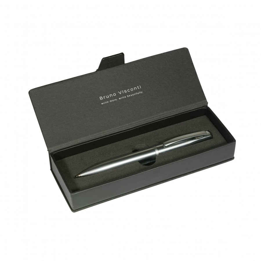 Ручка подарочная шариковая, поворотный механизм Portofino синяя, 1мм, металлический серебряный корпус, черный футляр 20-0251-06/08 Bruno Visconti