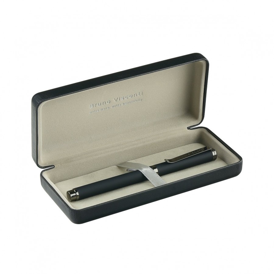 Ручка подарочная шариковая, поворотный механизм Venezia Pragmatico синяя 1мм корпус черный металлический, черный футляр 20-0384/04-14 Bruno Visconti