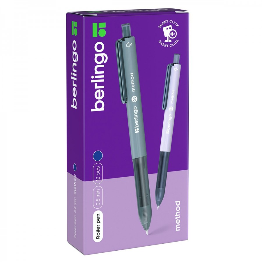 "Автоматическая ручка-роллер нового поколения Berlingo ""Method"" создана для бесшумной работы там, где важна тишина. Инновационная модель не издаёт характерных щелчков при нажатии, что позволяет полностью сосредоточиться на работе или учёбе и не мешать окружающим.