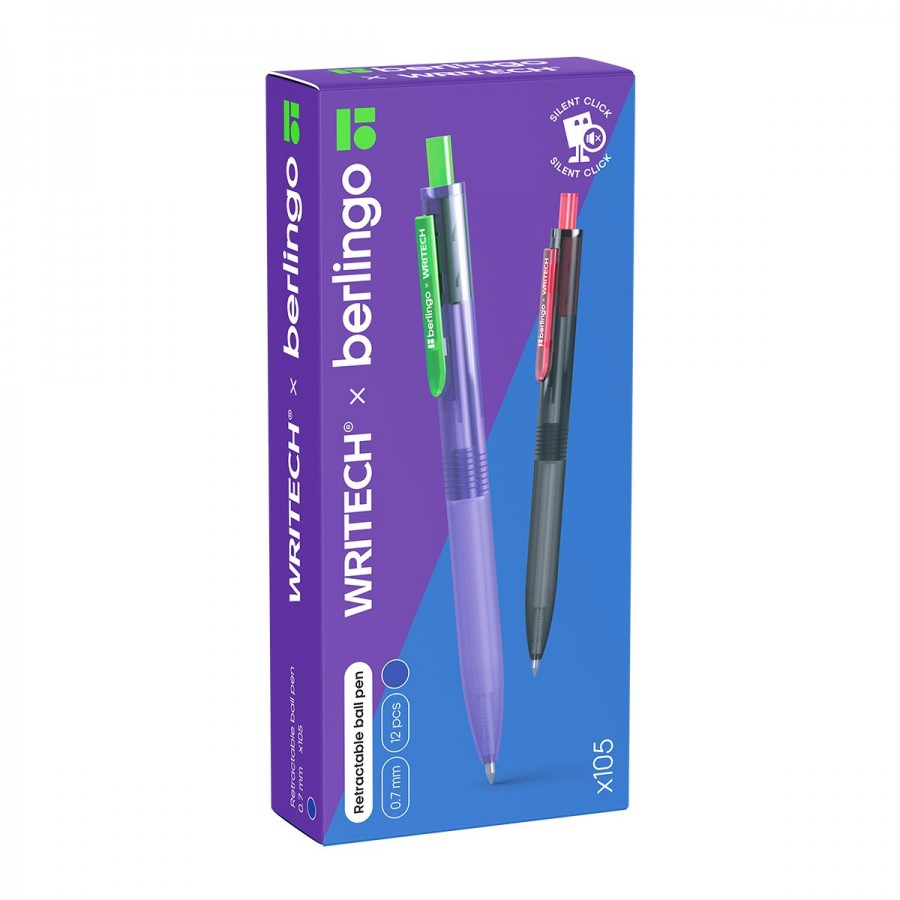 Новая автоматическая шариковая ручка Berlingo x Writech — это идеальный спутник для продуктивной работы и учёбы. Её инновационный бесшумный механизм позволяет сосредоточиться на главном, не отвлекаясь на щелчки и не беспокоя окружающих. Уникальный автоматический клип обеспечивает дополнительный комфорт: он убирается во время письма и самостоятельно возвращается на место, чтобы можно было легко закрепить ручку на кармане, обложке планшета или ежедневнике.