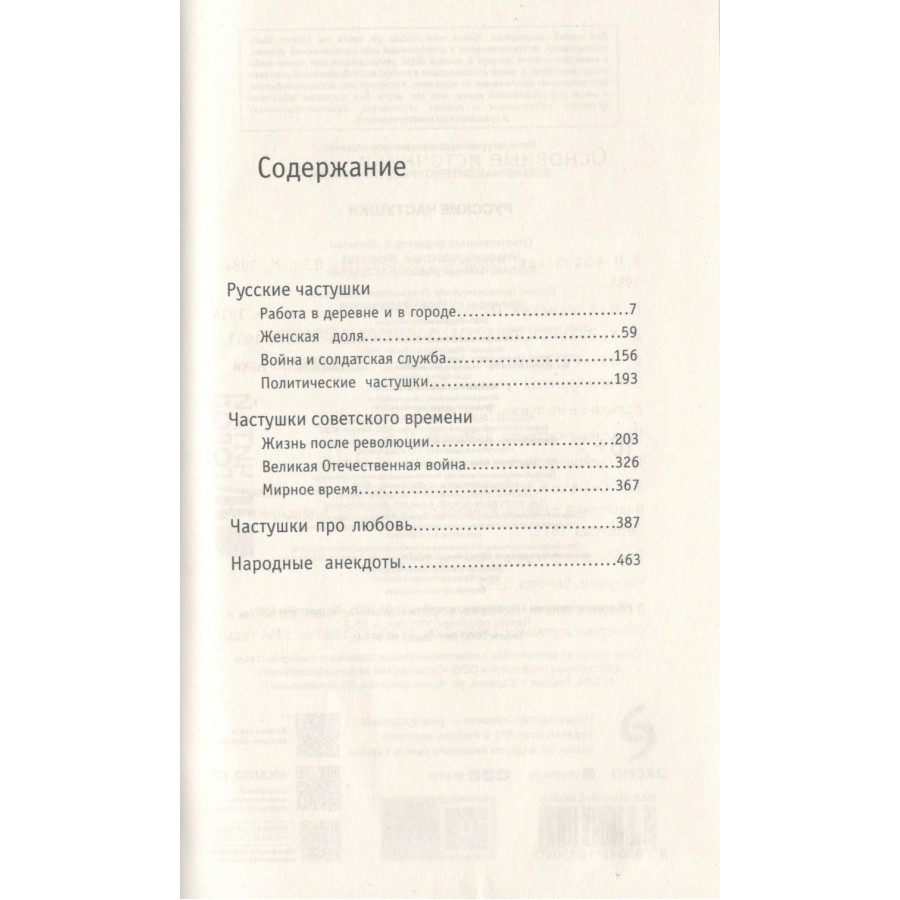 В этом сборнике собраны частушки о работе, о войне, о политике, о любви и о многих других сторонах жизни простых русских людей. Выразительность частушки, образность, непосредственность — эти черты делают ее одним из самых популярных жанров народного творчества.
