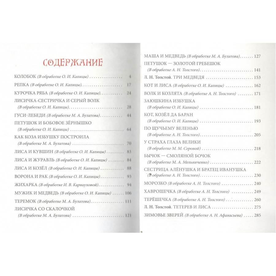 "Колобок", "Репка", "Курочка Ряба", "Гуси-лебеди", "Теремок", "Три медведя", "По щучьему веленью" и многие другие.
