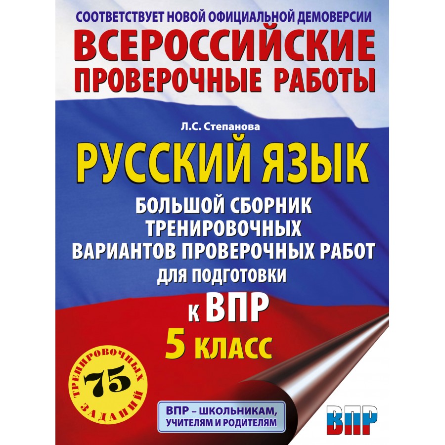 Русский язык. Большой сборник тренировочных вариантов проверочных работ для подготовки к ВПР. 5 класс. 75 заданий. Проверочные работы. Степанова Л.С. АСТ