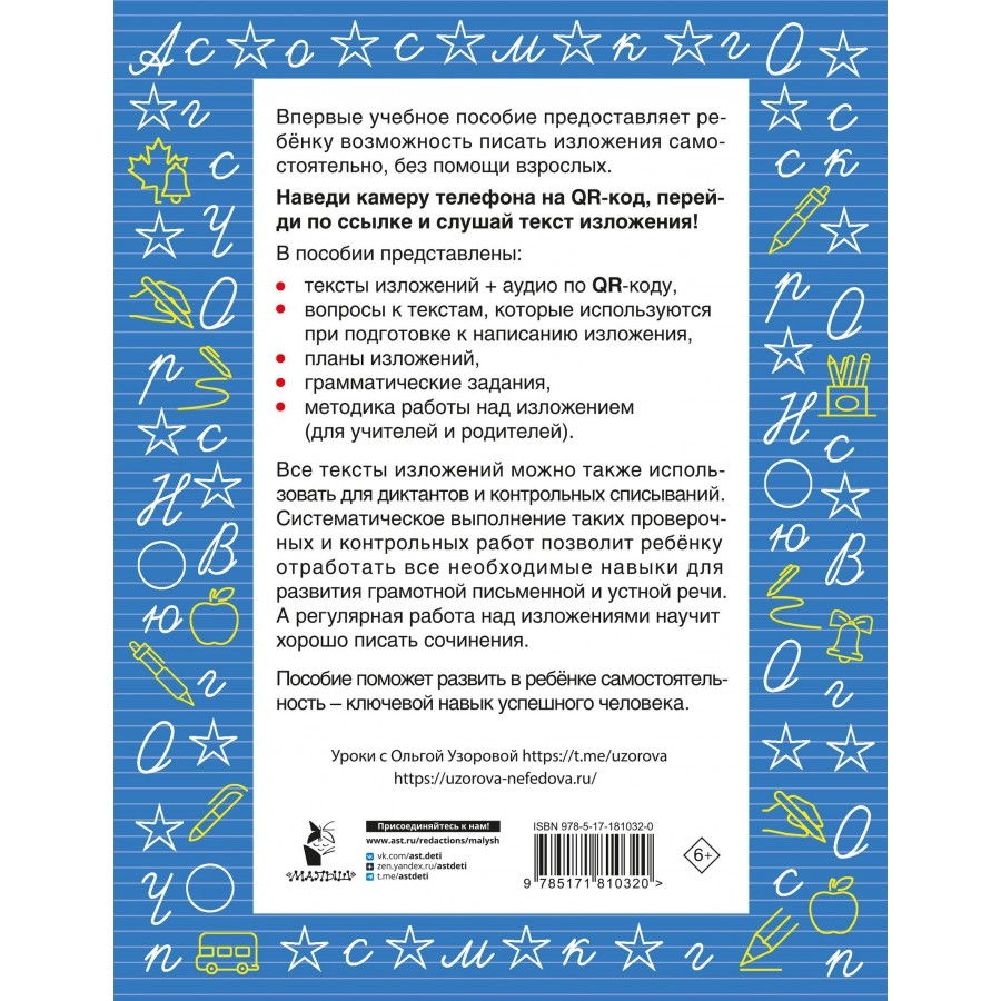 Русский язык. Лучшие изложения. 4 класс. Слушай изложение по QR-коду. Тренажер. Узорова О.В. АСТ