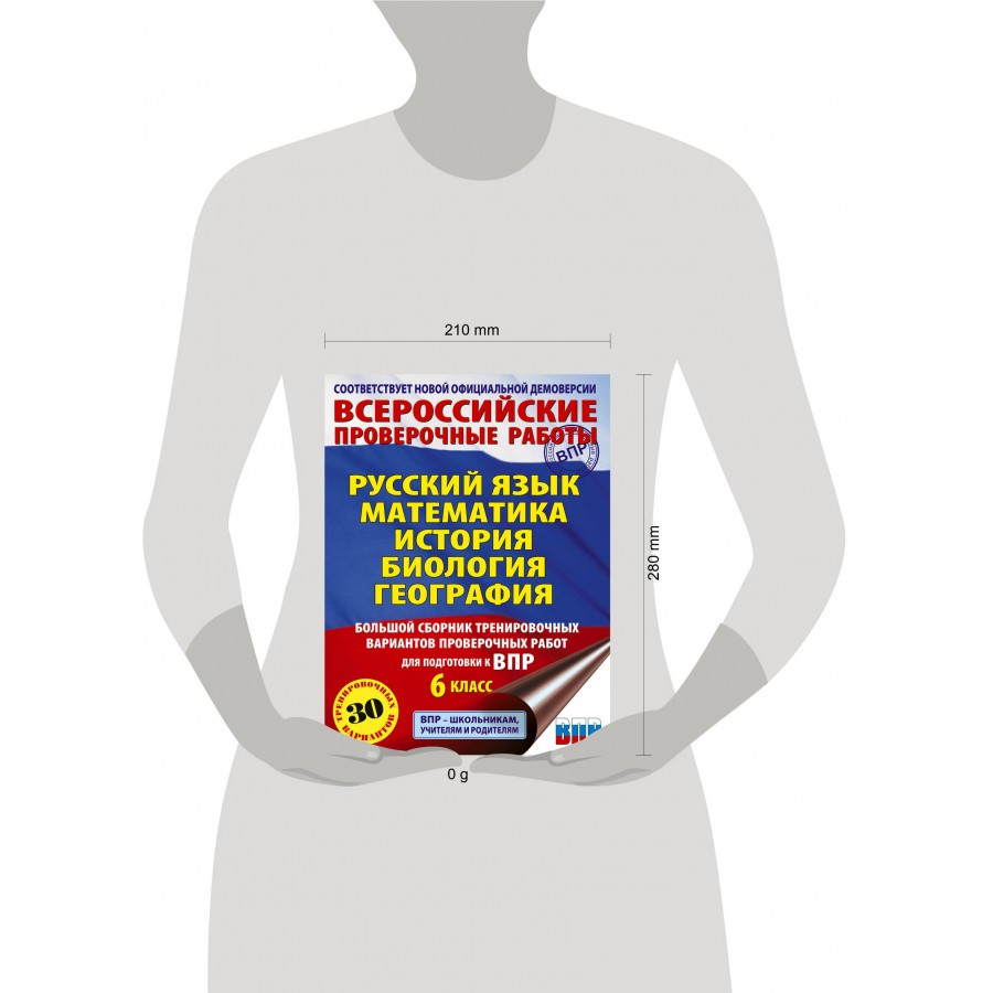 Пособие содержит 30 тренировочных вариантов проверочных работ по РУССКОМУ ЯЗЫКУ, МАТЕМАТИКЕ, ИСТОРИИ, ОБЩЕСТВОЗНАНИЮ, ФИЗИКЕ, БИОЛОГИИ, ГЕОГРАФИИ И АНГЛИЙСКОМУ ЯЗЫКУ — предметам, по которым пишут ВПР в 6 классе на всей территории страны.