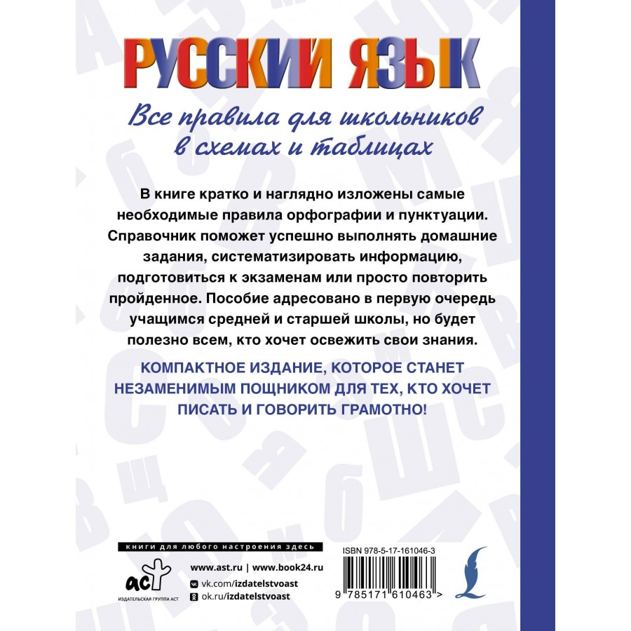Издание включает в себя курс русского языка для учащихся 5–9-х классов. Все правила проиллюстрированы примерами из живой речи и художественной литературы. Простые таблицы и схемы помогут в кратчайшие сроки освоить или повторить любую грамматическую тему.