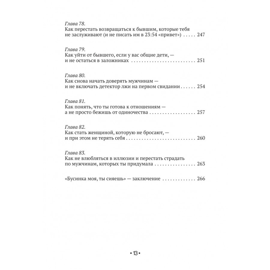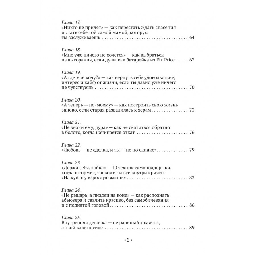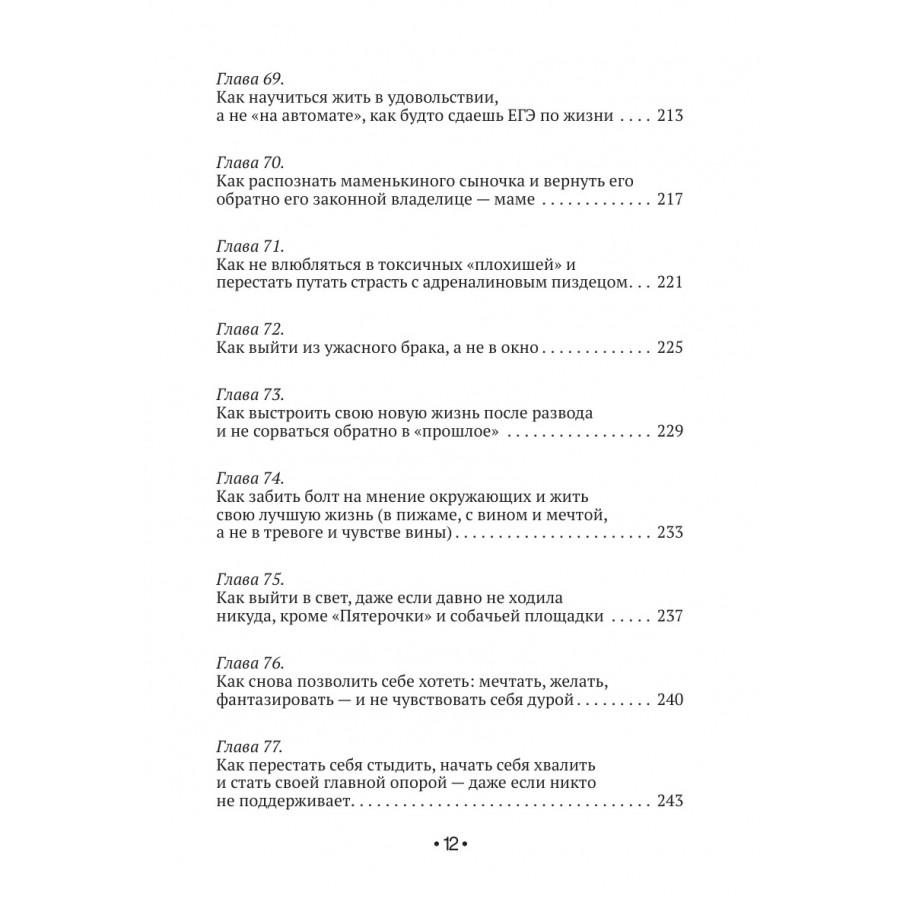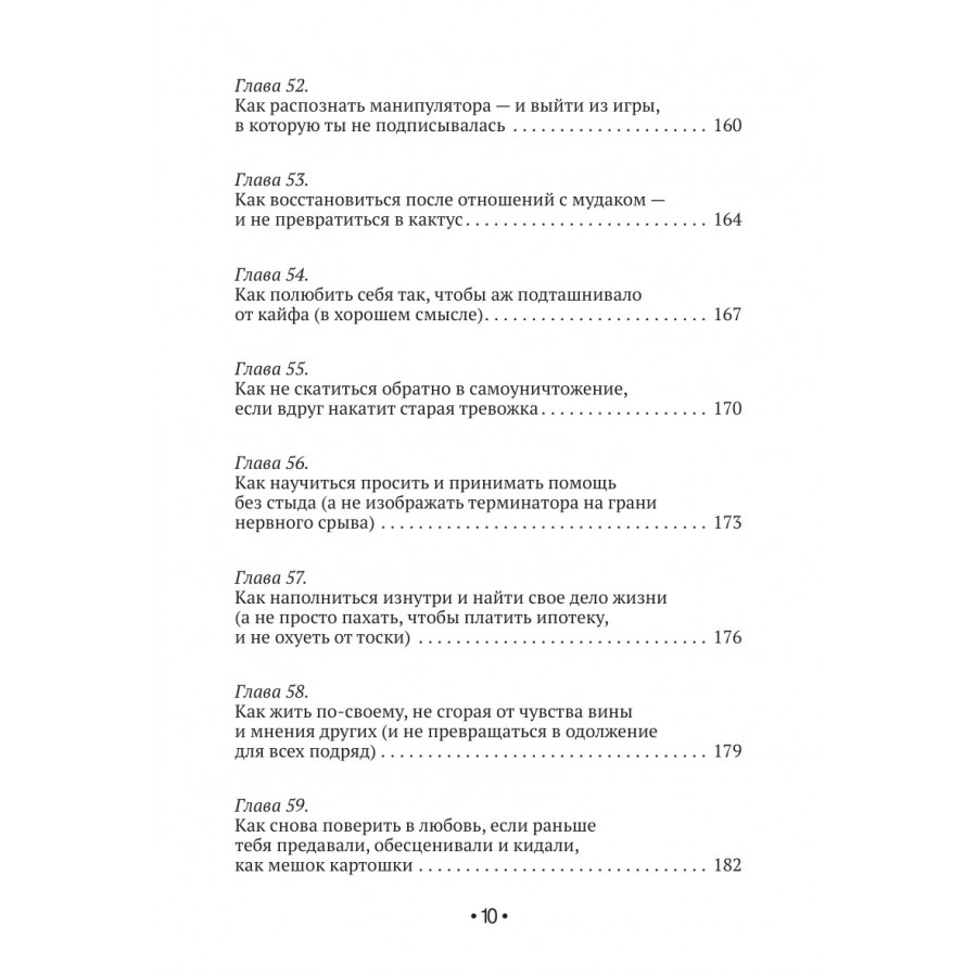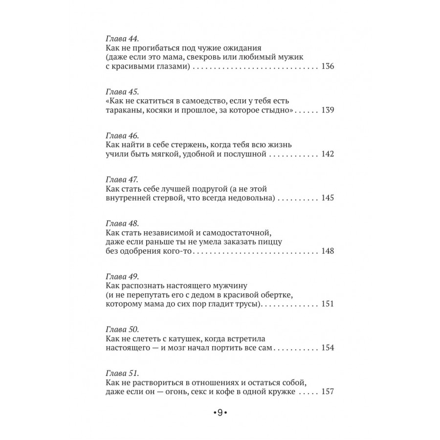 Как наконец забить на чужое мнение и начать жить в свое удовольствие? Снова мечтать, хотеть и фантазировать — без мыслей: "Я выгляжу глупо? Что обо мне подумают?" Твой личный ментальный навигатор подскажет, как перейти от ночных слез в подушку к холодному: "Спасибо, но нет", — и не вздрагивать от собственной смелости. Ты заслуживаешь и признание, и любовь, и уважение, и прежде всего — от себя самой!