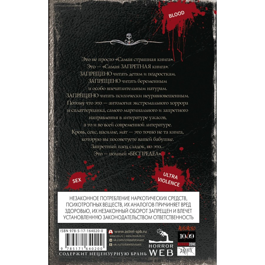 Потому что это — антология экстремального хоррора и сплаттерпанка, самого маргинального и запретного направления в литературе ужасов, а то и во всей современной литературе. Кровь, секс, насилие, мат — это точно не та книга, которую вы посоветуете вашей бабушке.