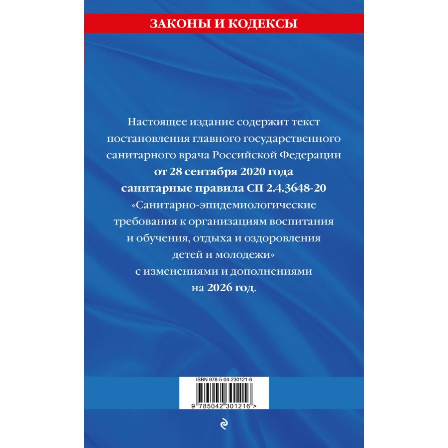 Настоящее издание содержит текст постановления гланого госудрственного санитарного врача Российской Федерации от 28 сентября 2020 года "Санитарно-эпидемиологические требования к организациямвоспитания и обучения, отдыха и оздоровления детей и молодежи" с изменениями и дополнениями на 2026 год.