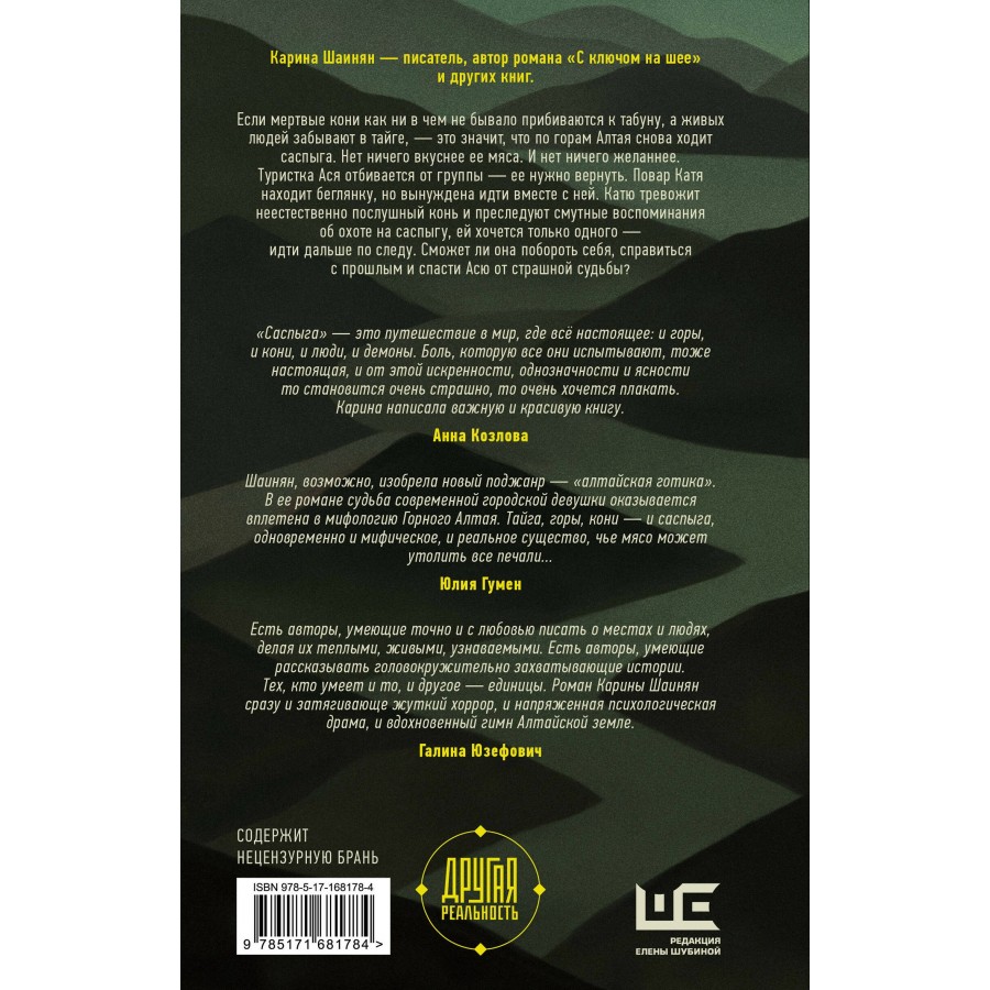 - Катя, главная героиня книги, терзается смутными воспоминаниями об охоте на саспыгу — сказочного зверя, мясо которого безумно вкусно и способно защитить его съевшего от всех несчастий. Отправившись на поиски исчезнувшей на Алтае туристки Аси, она понимает, что этот таинственный эпизод ее жизни по каким-то причинам повторяется…