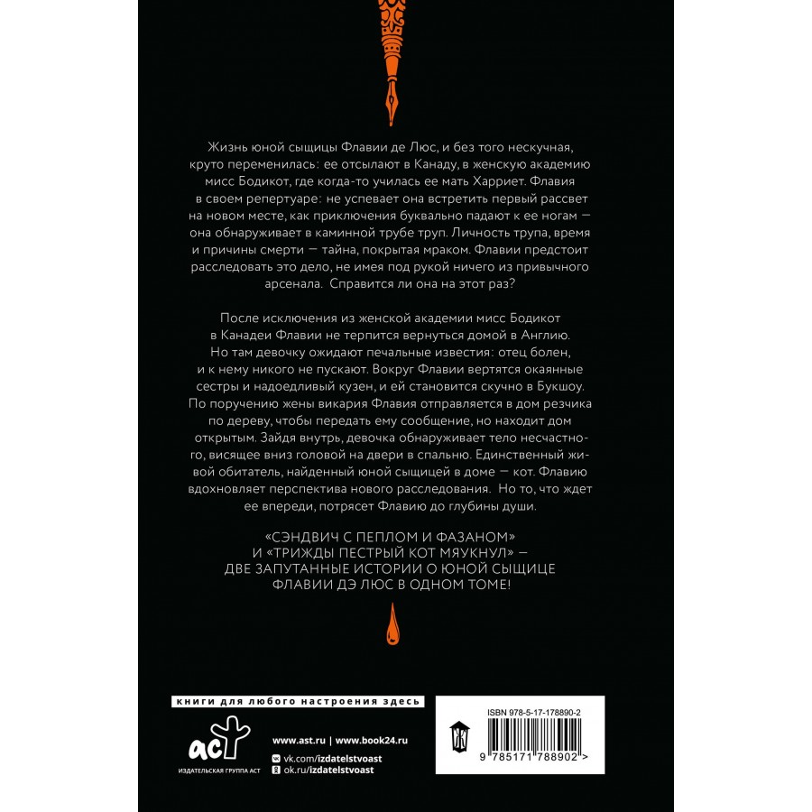 Жизнь неугомонной юной сыщицы Флавии де Люс, и без того нескучная, круто переменилась: ее отсылают из дома в Канаду, в женскую академию мисс Бодикот, где много лет назад училась ее мать Харриет. Флавия в своем репертуаре: не успевает она встретить первый рассвет на новом месте, как приключения буквально падают к ее ногам - она обнаруживает в каминной трубе труп. Личность трупа, время и причины смерти - тайна, покрытая мраком. Флавии предстоит расследовать это дело, не имея под рукой ни верного Доггера, ни доброжелательного инспектора, ни собственной химической лаборатории. Справится ли она на этот раз?