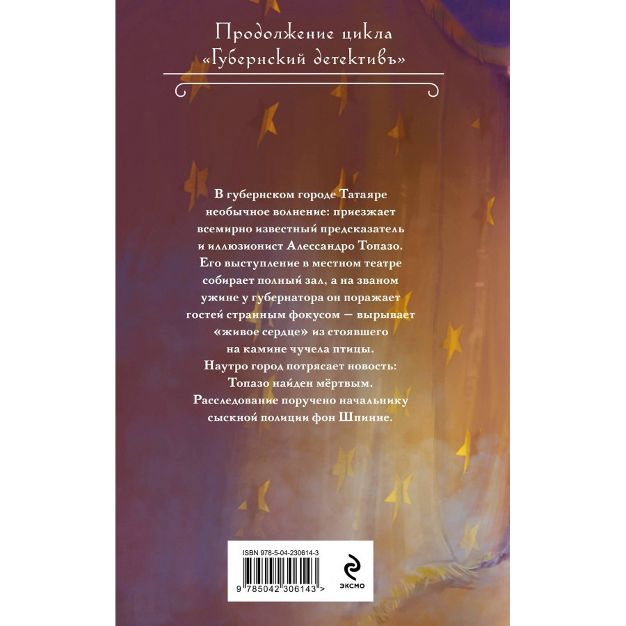 В губернском городе Татаяре необычное волнение: приезжает всемирно известный предсказатель и иллюзионист Алессандро Топазо. Его выступление в местном театре собирает полный зал, а на званом ужине у губернатора он поражает гостей странным фокусом — вырывает «живое сердце» из чучела птицы, стоявшего на камине.