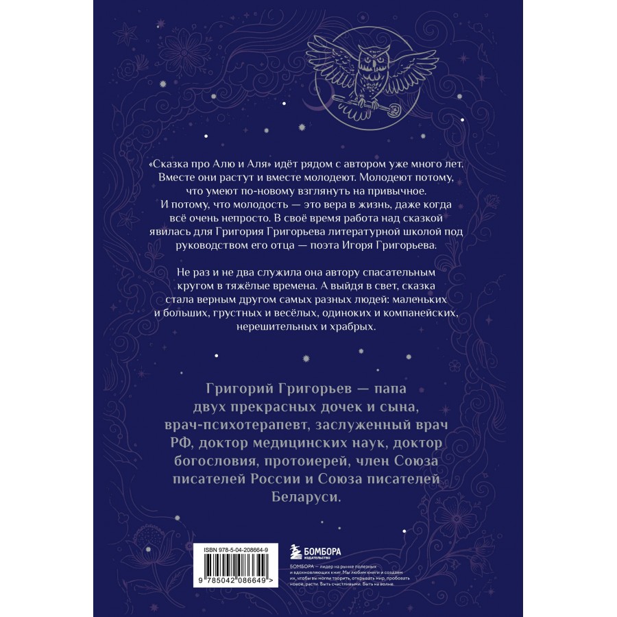 «Сказка про Алю и Аля» написана доктором медицинских наук, доктором богословия протоиереем Русской Православной Церкви о. Григорием Григорьевым. Писалась она долгие годы и не раз и не два служила автору спасательным кругом в тяжелые времена. А выйдя в свет, сказка стала верным другом самых разных людей: маленьких и больших, грустных и веселых, одиноких и компанейских, нерешительных и храбрых. Это увлекательная история о добре и зле, о твердости характера и торжестве света над тьмой. Послужит не только увлекательным чтением для детей, подростков и их родителей, но и ободрением в разных жизненных ситуациях.