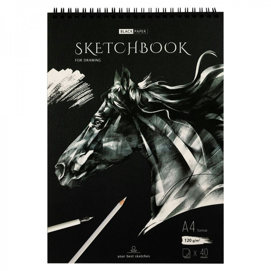 Скетчбук 40 листов А4 гребень Черная линия. Лошадь черный блок, 120г/м2 SkА440_38362 ArtSpace 10/20 315929