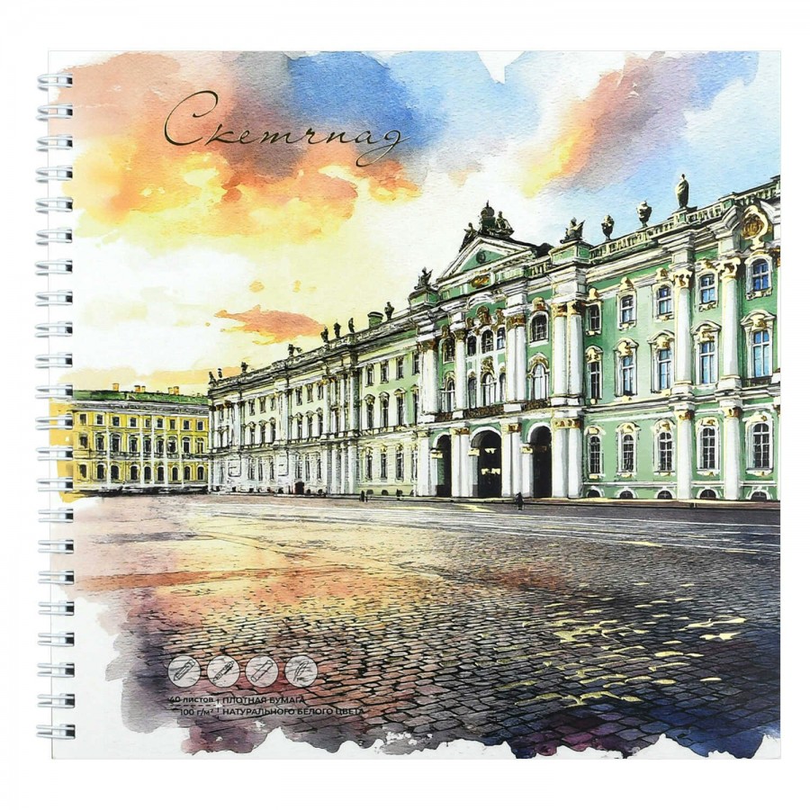 Альбом для рисования (Скетчпад) 195х195 мм, 40 л, блок - белый офсет 100 г/м2, арт. 72624 ЭРМИТАЖ /обложка полноцветная печать, гребень по короткой стороне, тиснение фольгой/