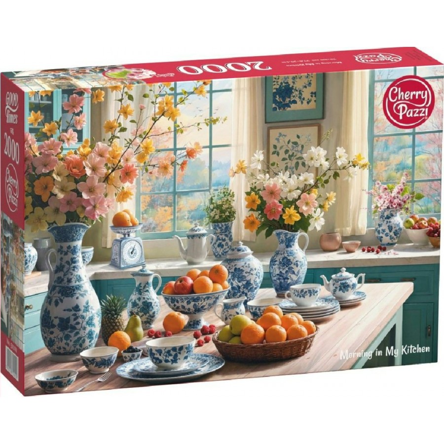 Насладитесь атмосферой деревенского уюта с пазлом Cherry Pazzi из 2000 деталей "Утро на моей кухне". На этом красивом пазле изображен очаровательный кухонный гарнитур со стильной бело-голубой посудой и яркими цветами. Теплые детали и изысканная композиция создают ощущение домашнего спокойствия и элегантности.