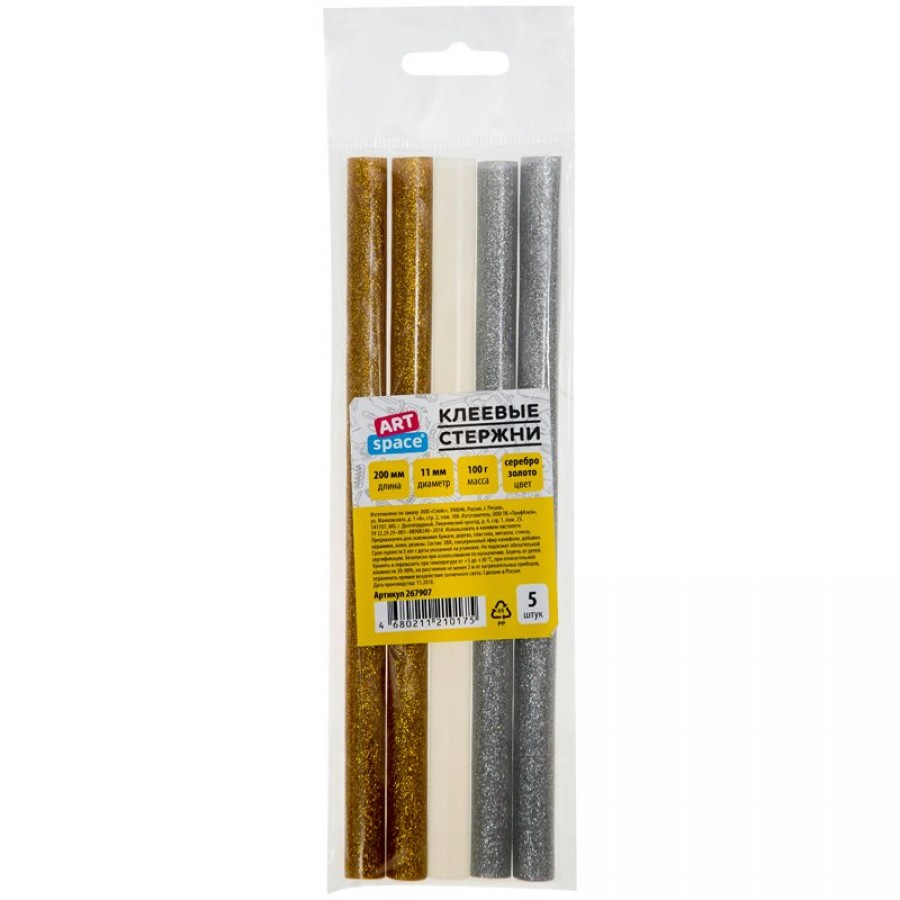 Стержни для клеевого пистолета 11х200мм 5шт золото, серебро, прозрачные 267907 ArtSpace