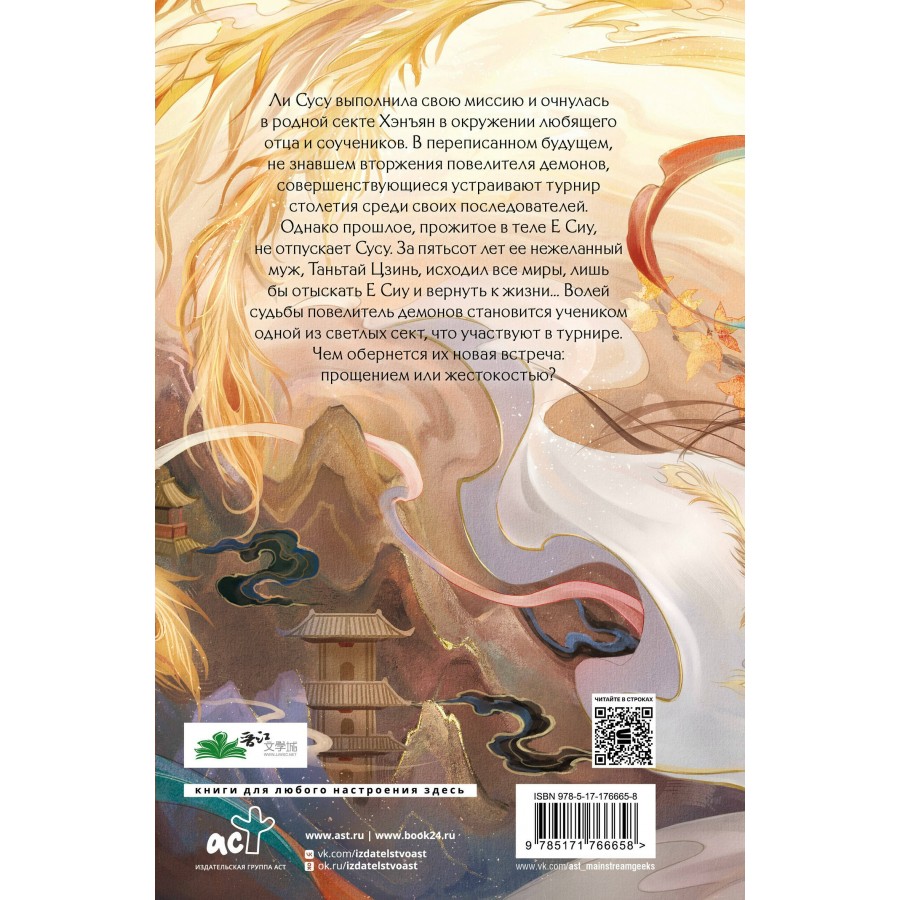 Однако прошлое, прожитое в теле Е Сиу, не отпускает Сусу. За пятьсот лет ее нежеланный муж, Таньтай Цзинь, исходил все миры, лишь бы отыскать Е Сиу и вернуть к жизни… Волей судьбы повелитель демонов становится учеником одной из светлых сект, что участвуют в турнире.