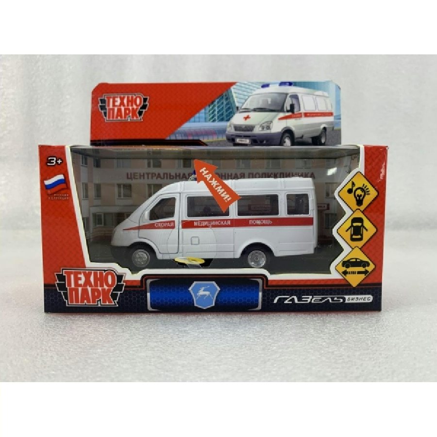 Технопарк Игрушка Машина ГАЗ - 3221 Газель Скорая помощь 12,2 см, металл, свет, звук, открываются двери, инерционная GAZ3221VAN-12SLAMB2- Китай