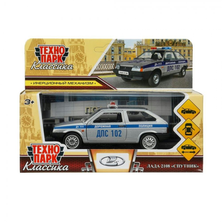 Технопарк Игрушка Машина Lada-2108 Спутник Полиция 12 см, металл, открываются двери, багажник 2108-12POL-SR Китай
