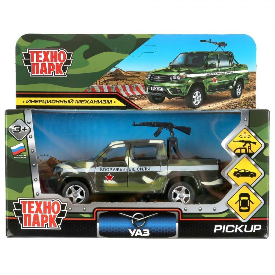 Технопарк Игрушка Машина металл УАЗ ПИКАП КАМУФЛЯЖ С ПУЛЕМЕТОМ 12 см PICKUP-12MIL-ARMGN Китай