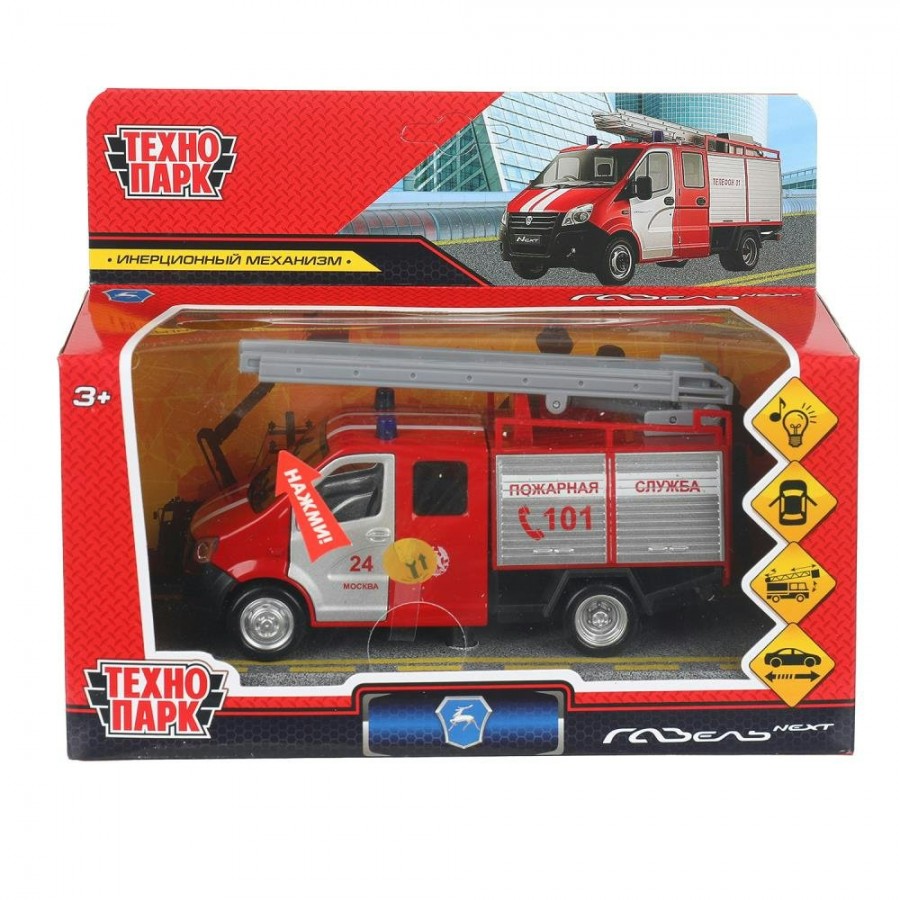 Технопарк Игрушка Машина. Газель Next пожарная/14,5 см, металл, свет, звук, инерционная NEXTFIR-15SL Китай