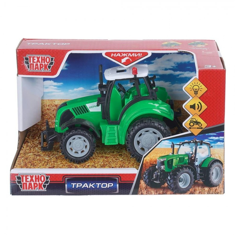 Технопарк Игрушка Трактор 15 см, пластик, свет, звук, подвижные деали, инерционная 1901A101-R-GREEN (96 Китай