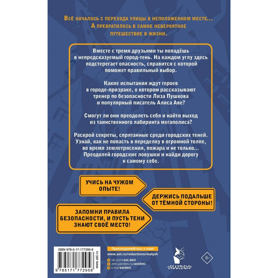 Что скрывает теневая сторона города? В этой книге тренер по безопасности Лиза Пушкова и популярный писатель Алиса Аве поделятся секретами выживания в мегаполисе. Вас ждет увлекательное путешествие в непредсказуемый город-тень. На каждом шагу здесь подстерегает опасность, преодолеть которую помогает правильный личный выбор. Как вести себя в толпе, что делать при пожаре в торговом центре, чем опасны объявления о лёгком заработке и многие другие правила безопасности предстоит усвоить героям этой книги - трем подросткам, которые неправильно перешли дорогу и очутились в призрачном мире. Совершенно обычный день превратился для героев истории в невероятное приключение, после которого ни одно правило безопасности не будет забыто. На пути к спасению ребятам предстоит найти выход не только из теневого города, но и лучше понять себя. Книга способствует личностному росту, развитию эмоционального и социального интеллекта, эмпатии. Каждая глава сопровождается иллюстрациями в стили комиксов. Учитесь на чужом опыте! Запомните важнейшие правила безопасности, и пусть тени знают своё место!
