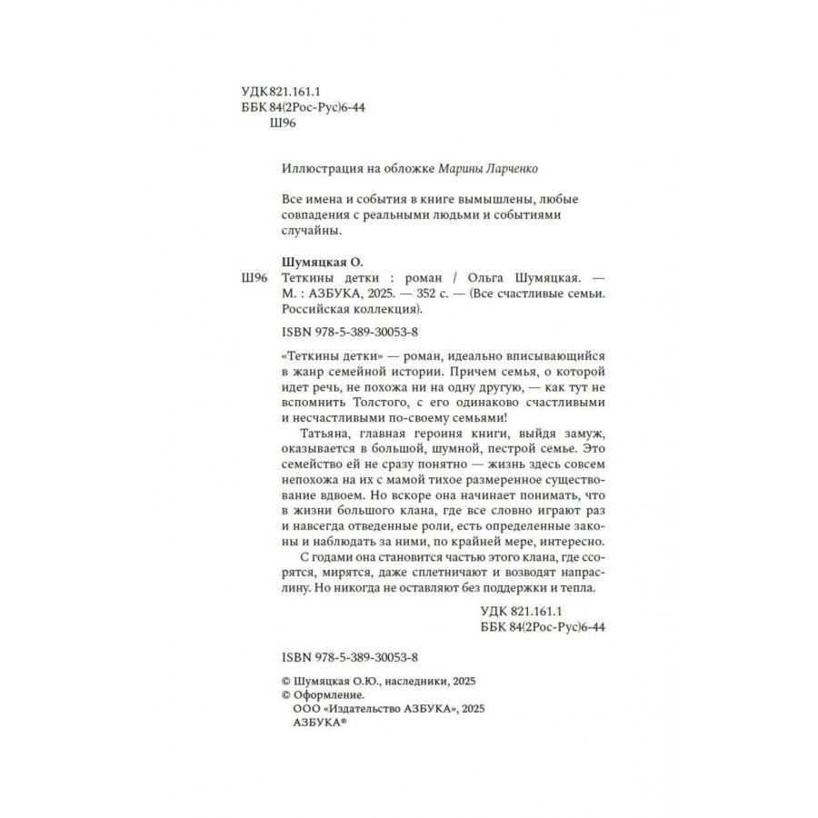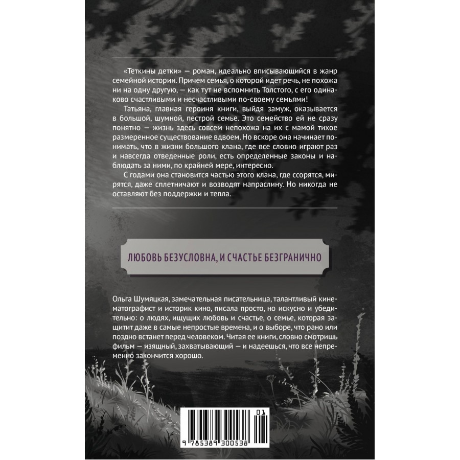 «Теткины детки» — роман, идеально вписывающийся в жанр семейной истории. Причем семья, о которой идет речь, не похожа ни на одну другую, — как тут не вспомнить Толстого, с его одинаково счастливыми и несчастливыми по-сво... Читать далее...