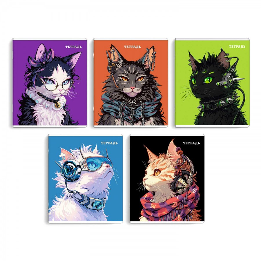Тетрадь, 48 л, клетка, арт. 68553/ 5 КИБЕР-КОТ /А5+, мягкий переплёт (2 скобы), обложка - выборочный ТВИН лак, мелованный картон 190 г/м2.