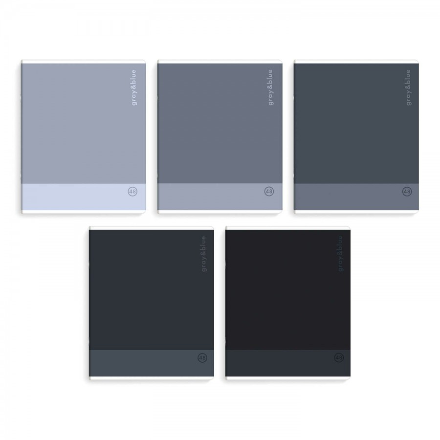 Тетрадь, 48 л, клетка, арт. 70935/ 5 ОТТЕНКИ СЕРОГО /А5+, мягкий переплёт (2 скобы), обложка - выборочный ТВИН лак, мелованный картон 190г/м2.