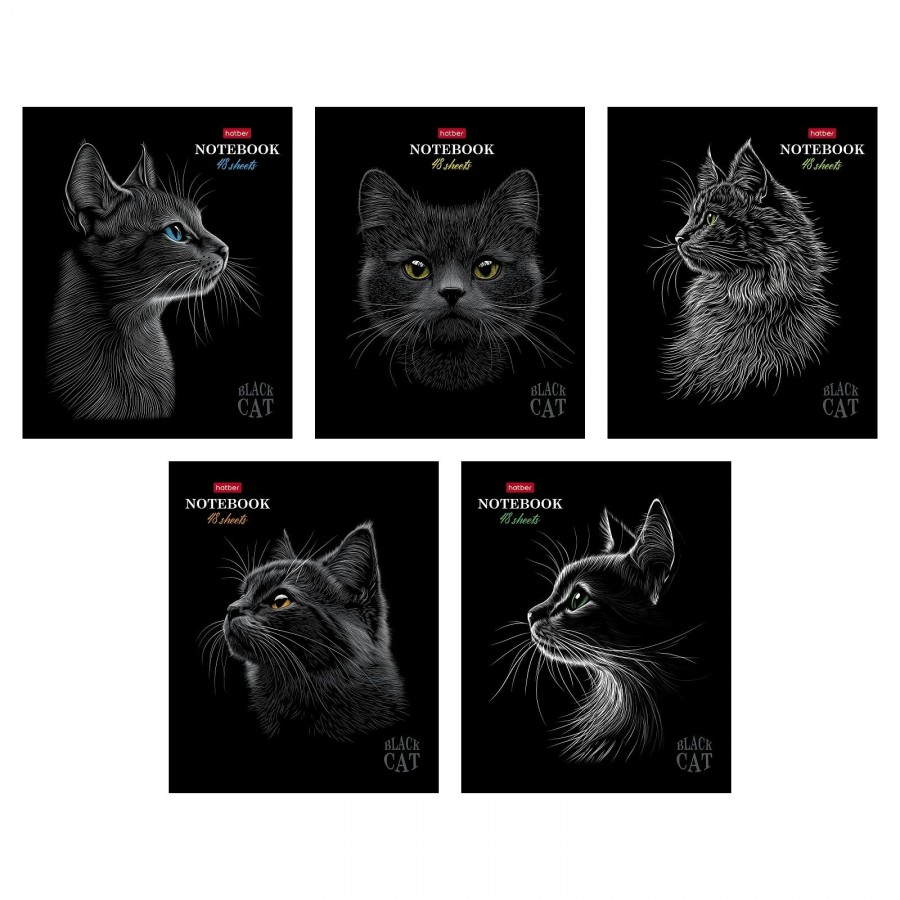 Тетрадь 48 листов А5 клетка Black Cat матовая ламинация 3D лак 5 дизайнов в блоке 65г/м2 48Т5лолВ1 Хатбер 5/60 093159