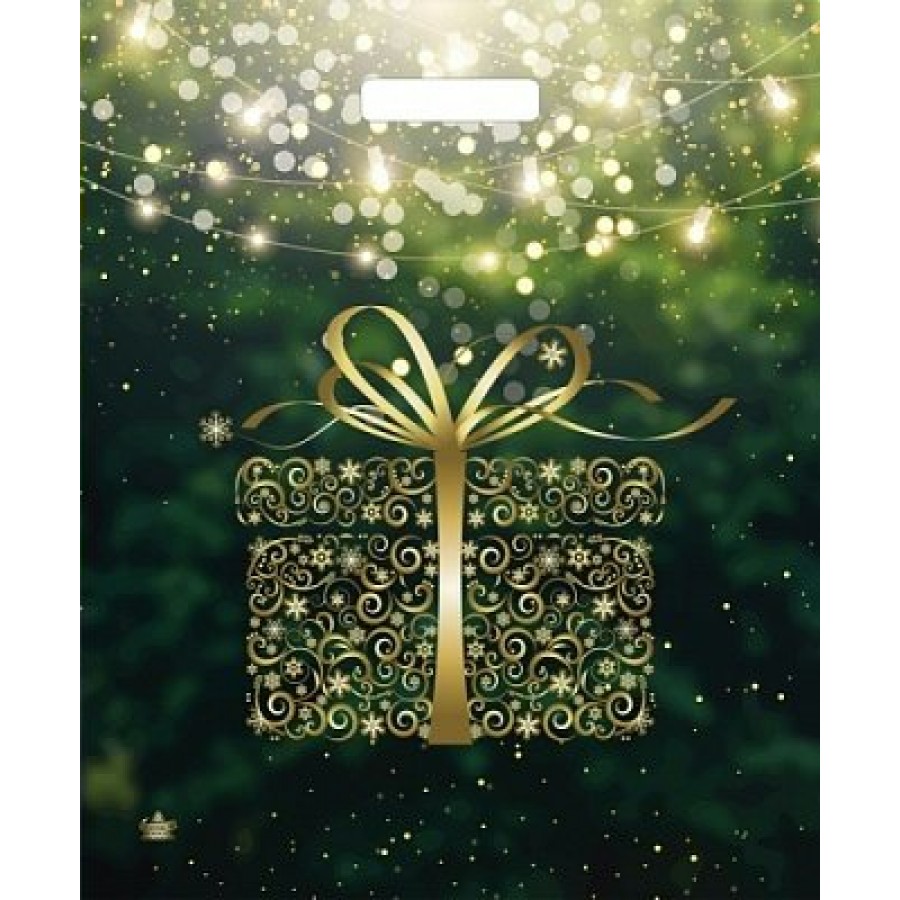 Тико/Пакет полиэтиленовый с вырубной ручкой. Новогодний.Золотой подарок/380 х 450/ВУР53308/
