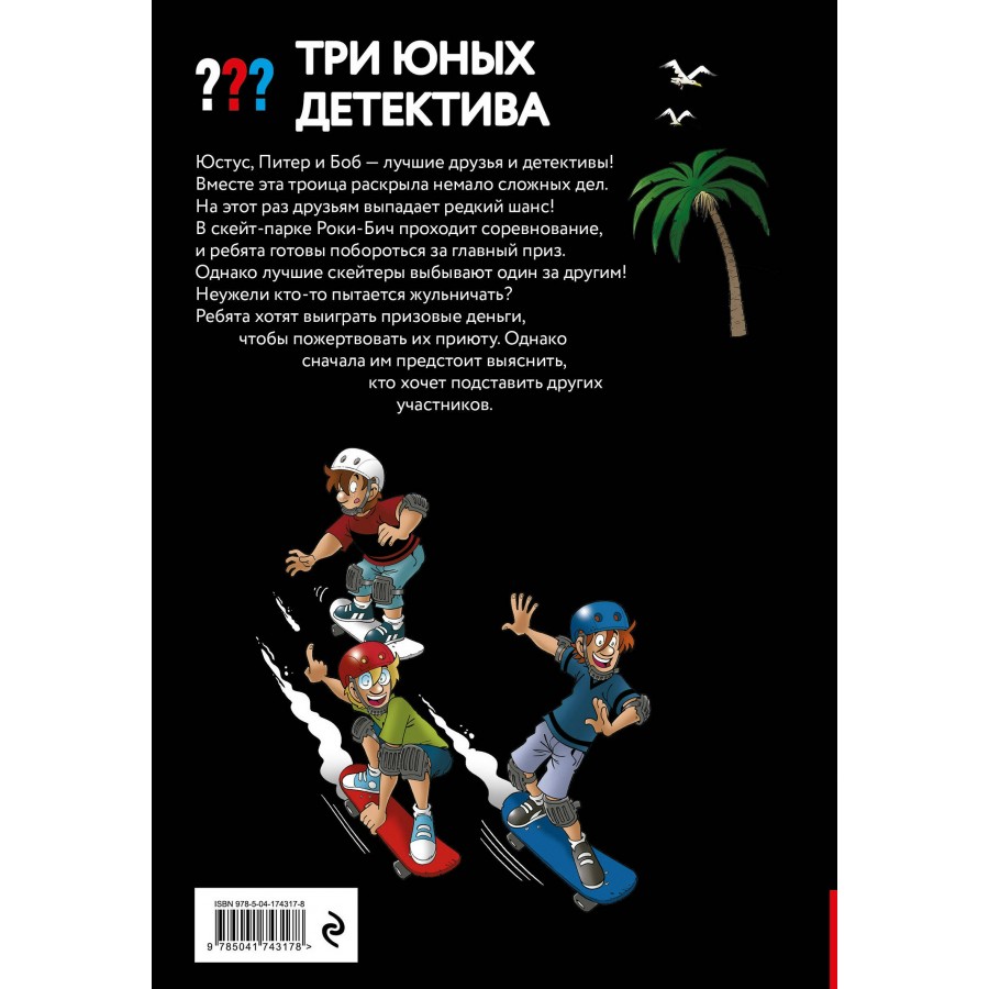 Юстус, Питер и Боб — лучшие друзья и детективы! Вместе эта троица раскрыла немало сложных дел. На этот раз друзьям выпадает редкий шанс! В скейт-парке Роки-Бич проходит соревнование, и ребята готовы побороться за главный приз. Однако лучшие скейтеры выбывают один за другим! Неужели кто-то пытается жульничать? Ребята попытаются выиграть призовые деньги, чтобы пожертвовать их приюту. Однако сначала им предстоит выяснить, кто хочет подставить других участников.