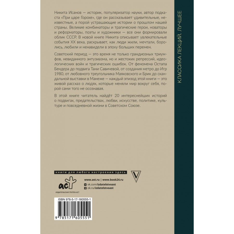 Никита Исанов — историк, автор популярного подкаста "При царе Горохе", где он рассказывает удивительные, неизвестные, а порой устрашающие истории о прошлом нашей страны. Великие комбинаторы и трагические герои, новаторы и реформаторы, диссиденты и простые граждане — все они формировали облик СССР. В новой книге Никита описывает увлекательные события ХХ века раскрывает, как люди жили, мечтали, боролись, любили и ненавидели в эпоху больших перемен.