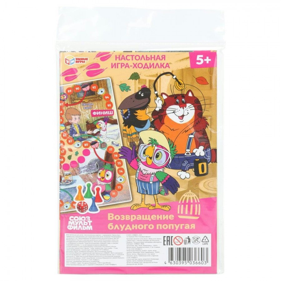 Настольная игра-ходилка на блистере «Союзмультфильм. Возвращение блудного попугая» ТМ «Умные игры» приглашает отправиться навстречу приключениям вместе с любимыми героями!