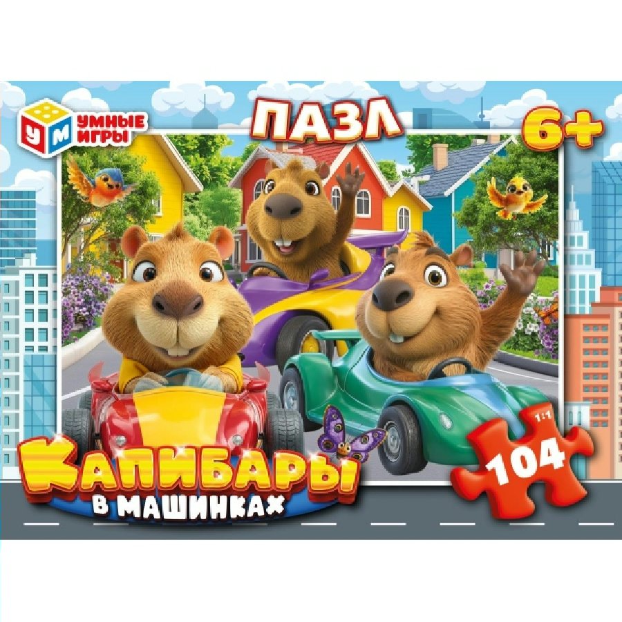 Умные игры Пазл 104 Капибары в машинках Россия