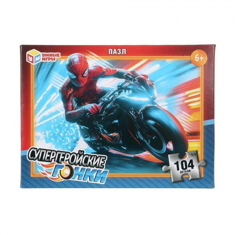 Умные игры Пазл 104 Супергеройские гонки Россия 190х141х35мм