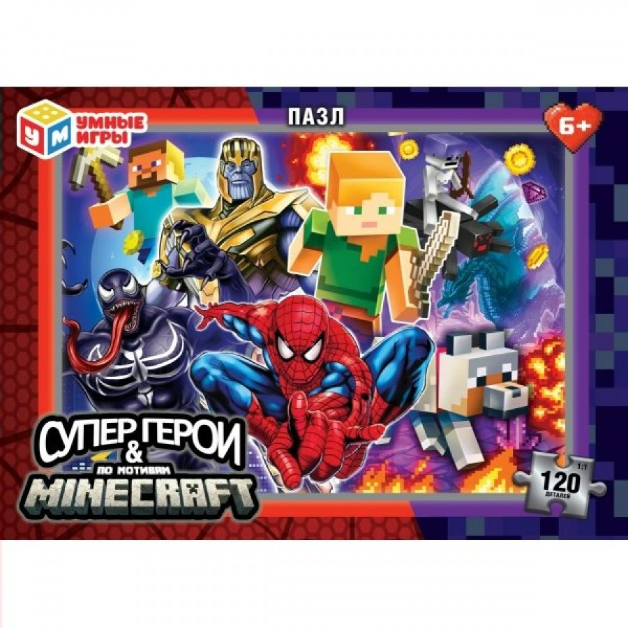 Умные игры Пазл 120 Супергерои & по мотивам Minecraft 395783 Россия