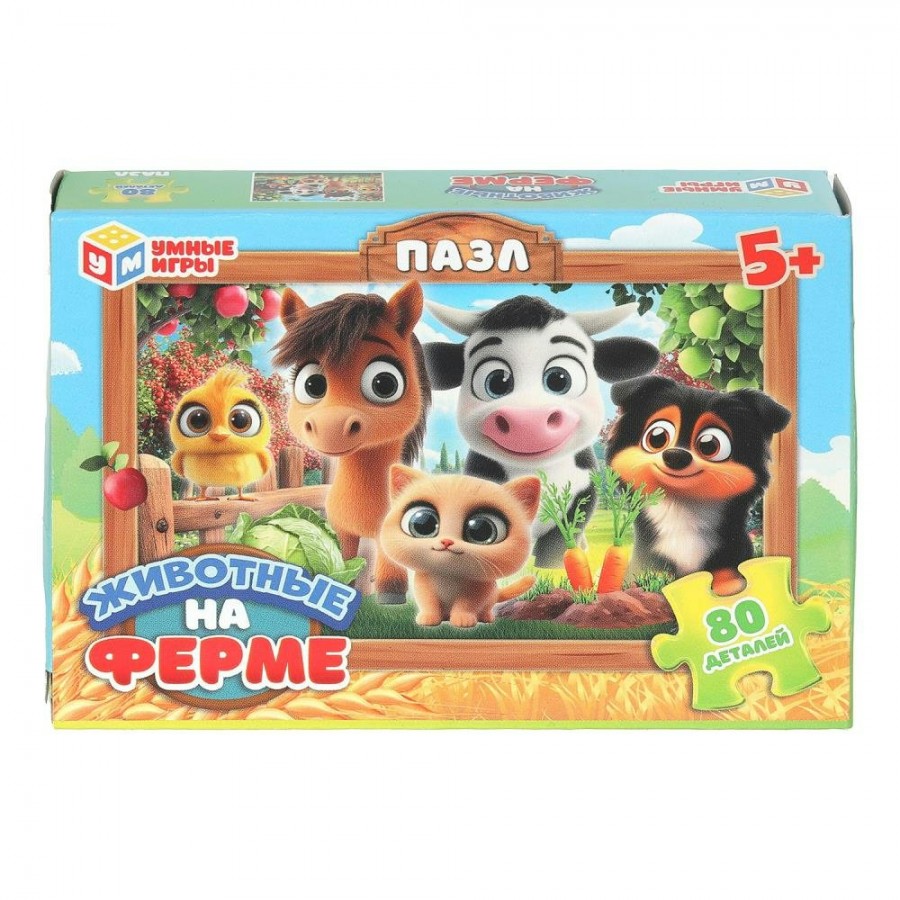 Классические пазлы в коробке «Животные на ферме» ТМ «Умные игры» непременно понравятся маленьким любознайкам: