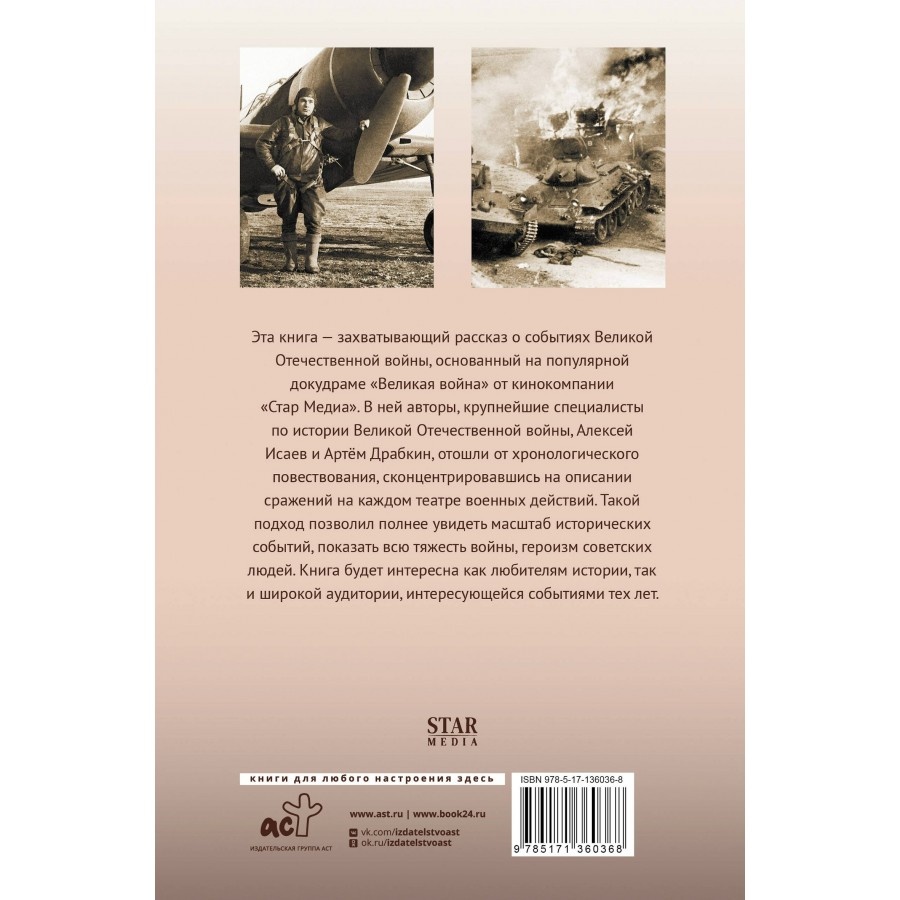 Эта книга — захватывающий рассказ о событиях Великой Отечественной войны, основанный на популярной докудраме от кинокомпании «Стар Медиа». Научный редактор провел тщательную работу над текстом, чтобы обеспечить достоверность и точность информации. Книга будет интересна как любителям истории, так и широкой аудитории, интересующейся событиями тех лет. Авторами сценария сериала являются Алексей Исаев и Артем Драбкин — известные историки и специалисты по Великой Отечественной войне. В книге подробно описываются ключевые моменты войны: от её начала до победы, с акцентом на героизм советских солдат и офицеров, а также на стратегические решения командования.