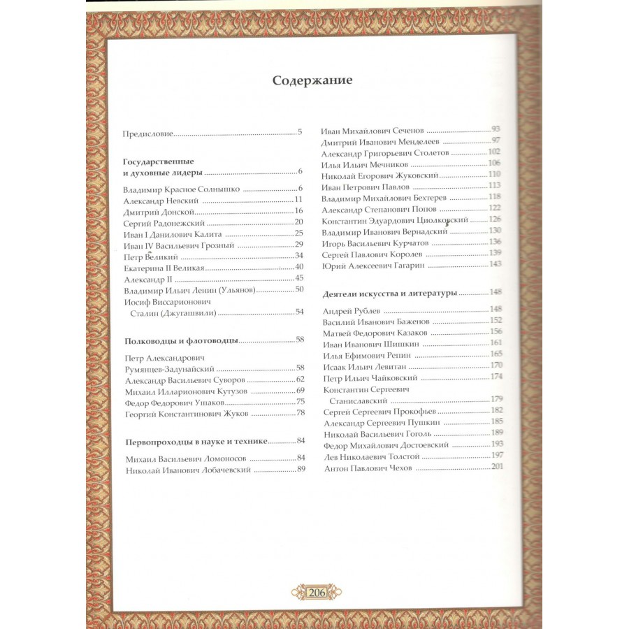 В книге читатель найдет 45 имен тех, без кого немыслима история России. Она содержит биографии государственных деятелей и духовных лидеров, с которыми связаны коренные преобразования в жизни страны, — от Владимира Святого до Ленина и Сталина. Истории военачальников, прославивших нашу Родину в битвах с врагом, — от Румянцева-Задунайского и Суворова до маршала Жукова. Жизнеописания ученых и изобретателей, благодаря которым российскую науку ценят во всем мире, — от Ломоносова и Менделеева до Павлова, Курчатова, Королева. Рассказы о великих художниках, поэтах, писателях и музыкантах — от Рублева до Левитана, от Пушкина до Чехова, от Чайковского до Прокофьева. Жизненный путь этих выдающихся личностей каждый из нас должен знать с раннего детства, потому что вместе эти они — и есть Великая Россия. Богатый иллюстративный ряд включает около 200 классических произведений русской живописи и редких фотографий. Для читателей любого возраста, интересующихся историей Отечества и нашим великим прошлым.