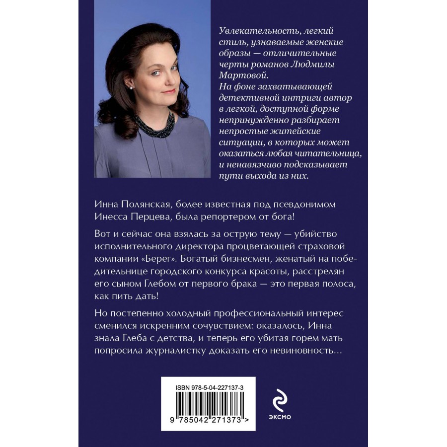 Инна Полянская, более известная под псевдонимом Инесса Перцева, была репортером от бога! Перцева обходилась редакции недешево, но громкие скандальные материалы выдавала с завидным постоянством. Даже ее собственный брак не обошелся без интриги: Инна тогда уволилась из газеты и устроилась посудомойкой в кафе Ледового дворца, чтобы привлечь внимание понравившегося ей хоккеиста!.. Вот и сейчас она взялась за острую тему — убийство исполнительного директора процветающей страховой компании «Берег. Богатый бизнесмен, женатый на победительнице городского конкурса красоты, расстрелян его сыном Глебом от первого брака — это первая полоса, как пить дать! Но постепенно холодный профессиональный интерес сменился искренним сочувствием: оказалось, Инна знала Глеба с детства, и теперь его убитая горем мать попросила журналистку доказать его невиновность…
