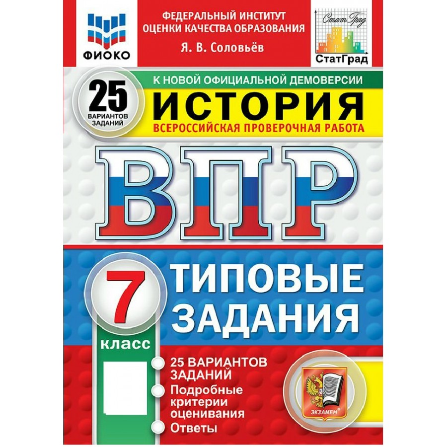 ВПР. История. 7 класс. Типовые задания. 25 вариантов. Подробные критерии оценивания. Ответы. ФИОКО. Новый. 2025. Проверочные работы. Соловьев Я.В. Экзамен