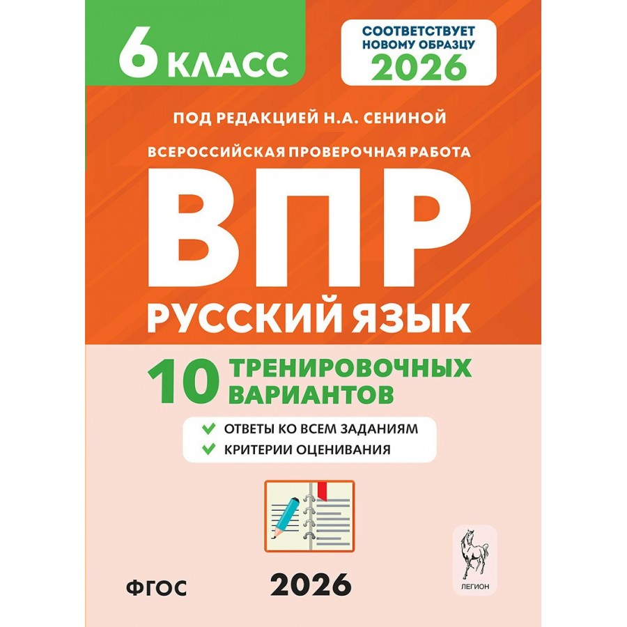 ВПР. Русский язык 6 класс. 10 тренировочных вариантов. 2026. Проверочные работы. Сенина Н.А. Легион