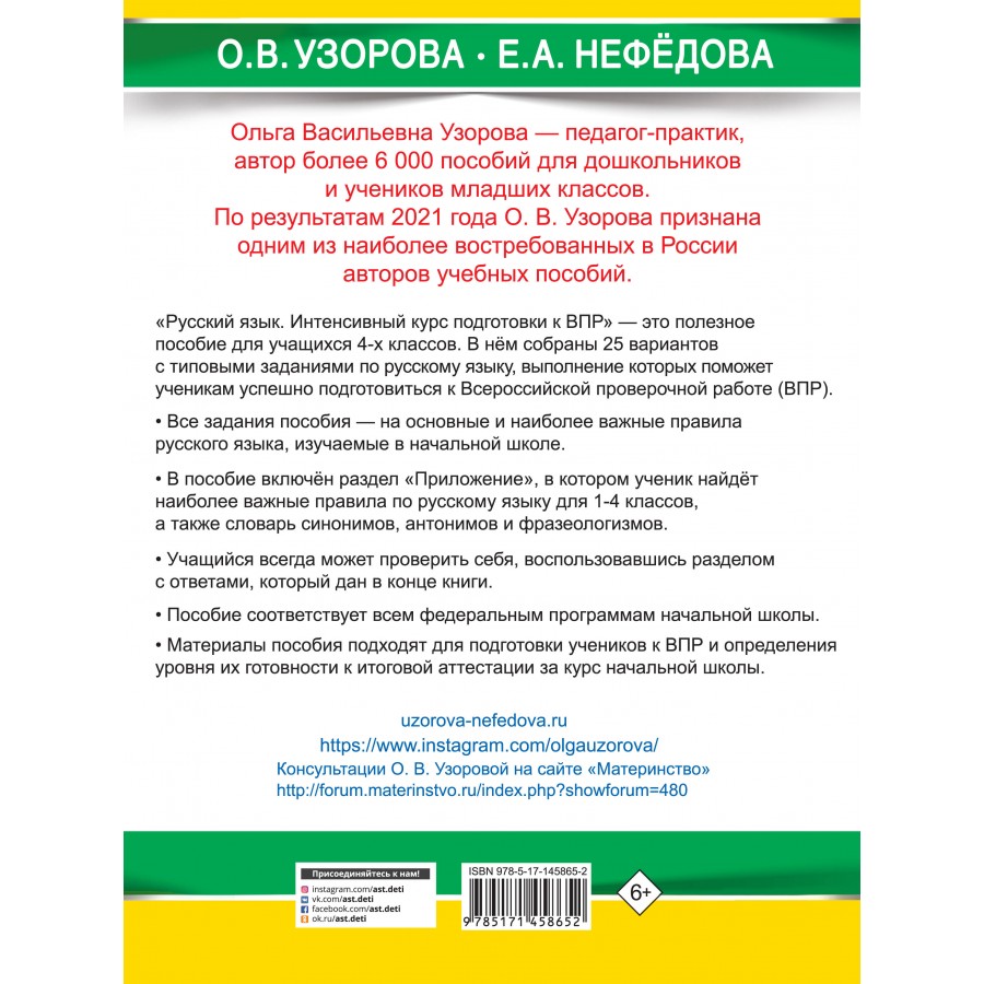 Учебное пособие известных педагогов-практиков О. В. Узоровой и Е. А. Нефёдовой для подготовки учащихся к итоговой аттестации по русскому языку за курс начальной школы.