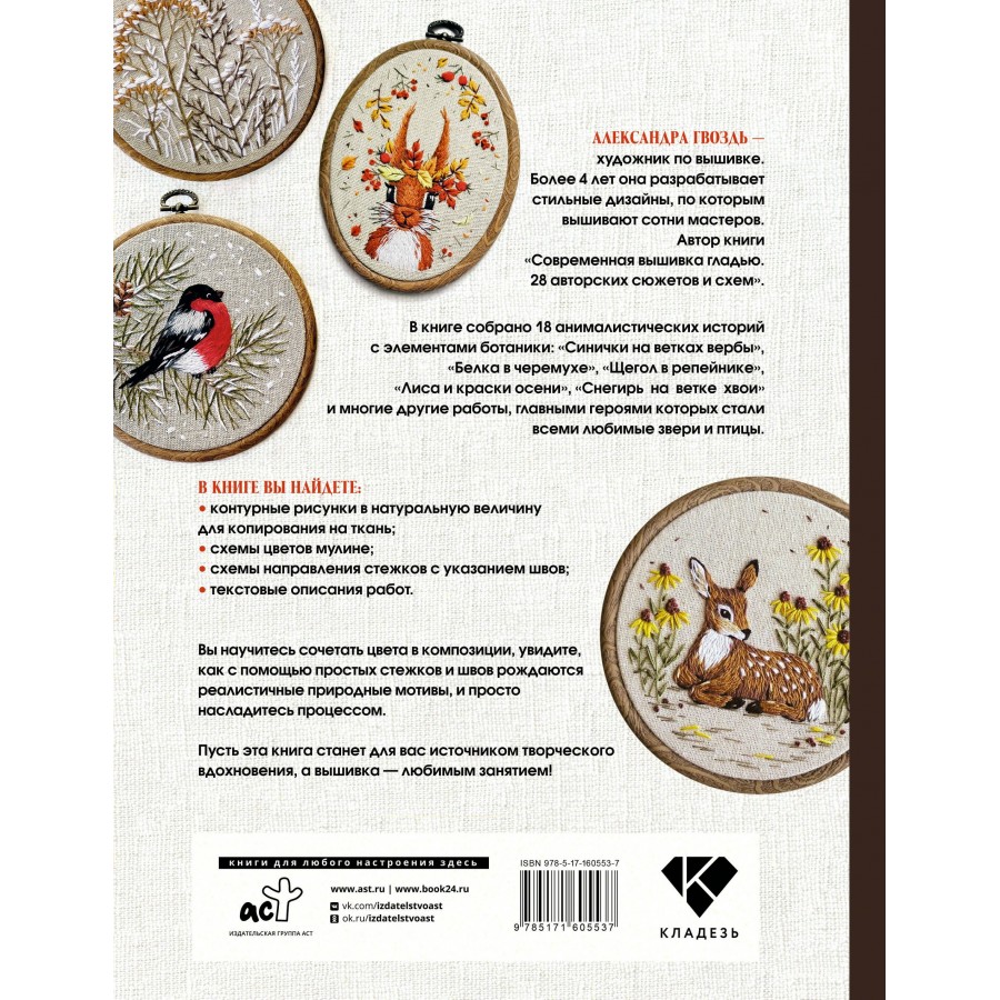 Вышивка гладью: природные мотивы. Животные, птицы, цветы. Гвоздь А.А.