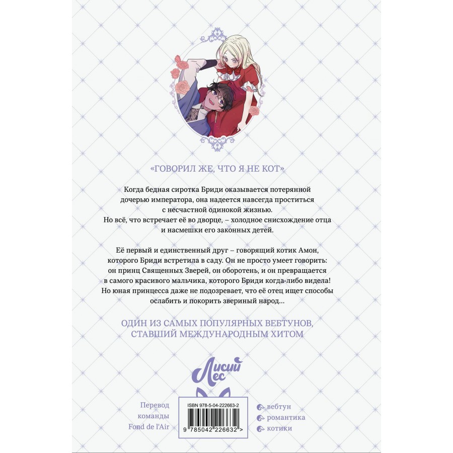 Когда бедная сиротка Бриди оказывается потерянной дочерью императора, она надеется навсегда проститься с несчастной одинокой жизнью. Но все, что встречает её во дворце – холодное снисхождение отца и насмешки его законных детей. Её первый и единственный друг – говорящий котик Амон, которого Бриди встретила в саду. Хотя у Амона просто невероятное самомнение для маленького пушистого зверька, он идеальный товарищ, о котором Бриди всегда мечтала. Впрочем, у Амона есть причины гордиться собой. Мало того, что он очаровательный котик, – он принц Священных Зверей, он оборотень, и он превращается в самого красивого мальчика, которого Бриди когда-либо видела! Дружбе Амона и Бриди не мешает даже то, что люди веками воевали с оборотнями. Но они не знают, что отец Бриди давно ищет способ уничтожить Священных Зверей и видит в них главную угрозу своей власти…