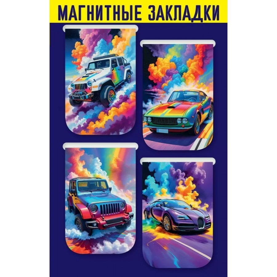 Закладка магнитная Набор 4шт Радужные машины на подложке Праздник 50001838